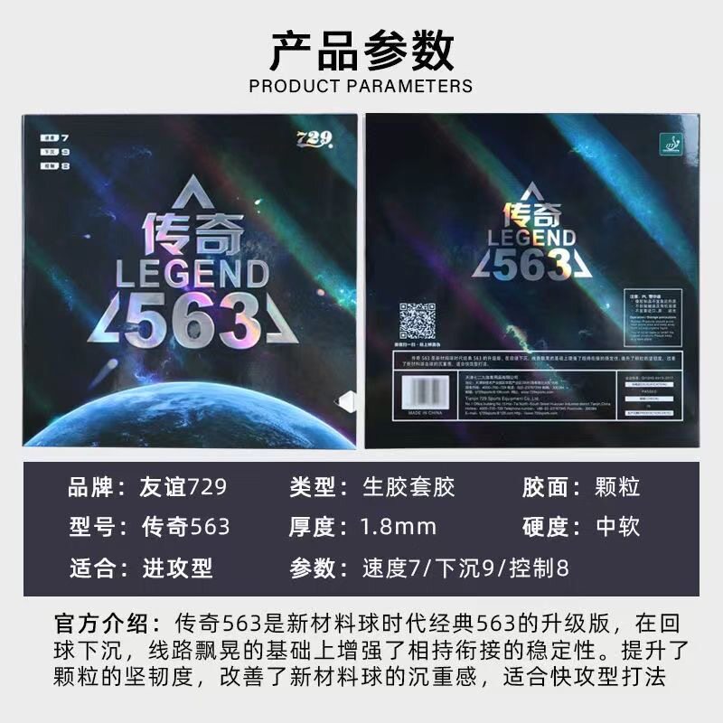 为您提供商品乒乓球拍胶皮颗粒传奇563生胶套胶进攻高弹内能乒乓球胶皮 729新款的详细介绍,