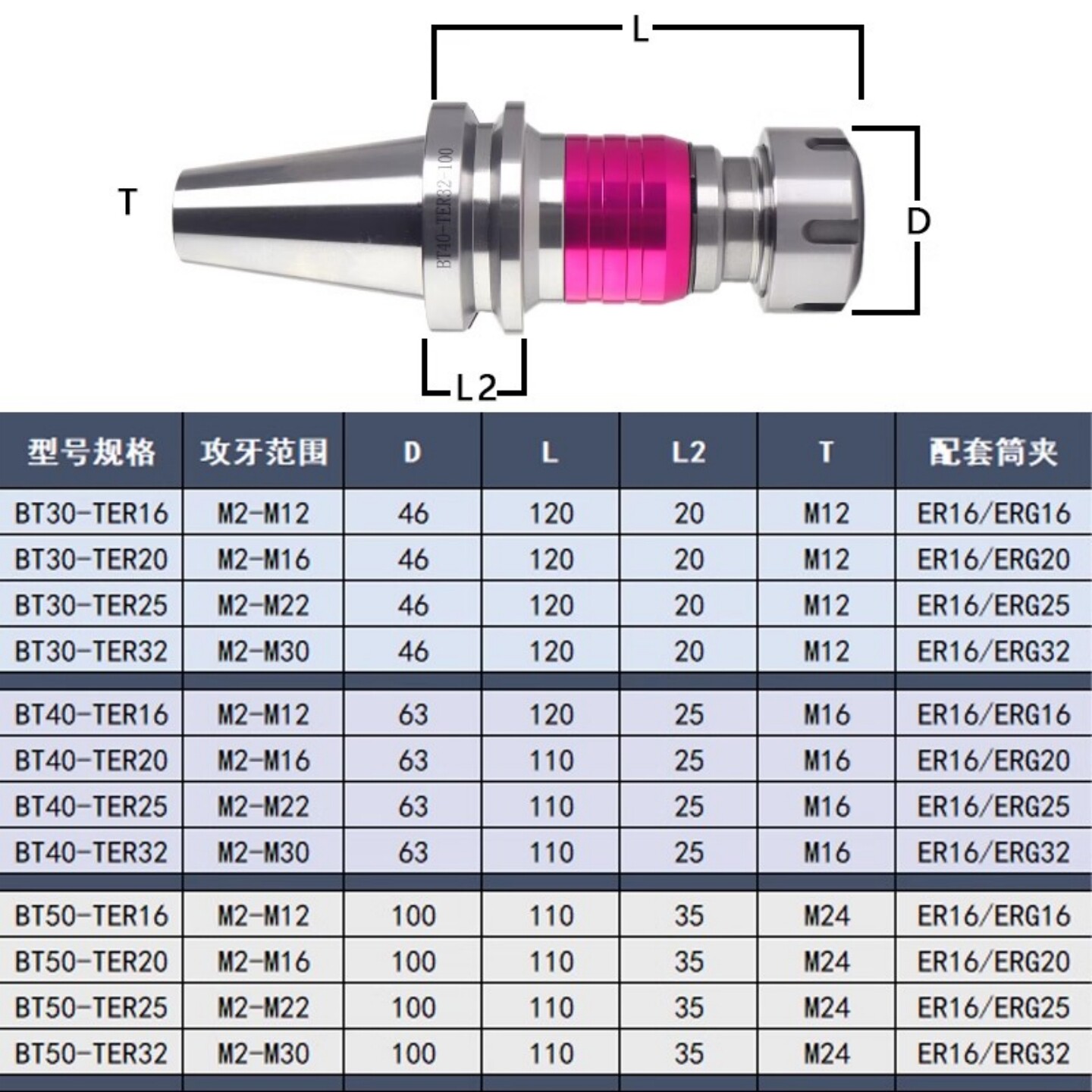为您提供商品加工中心浮动攻丝刀柄BT30BT40BT50加长TER16202532伸缩攻牙刀柄的详细介绍,