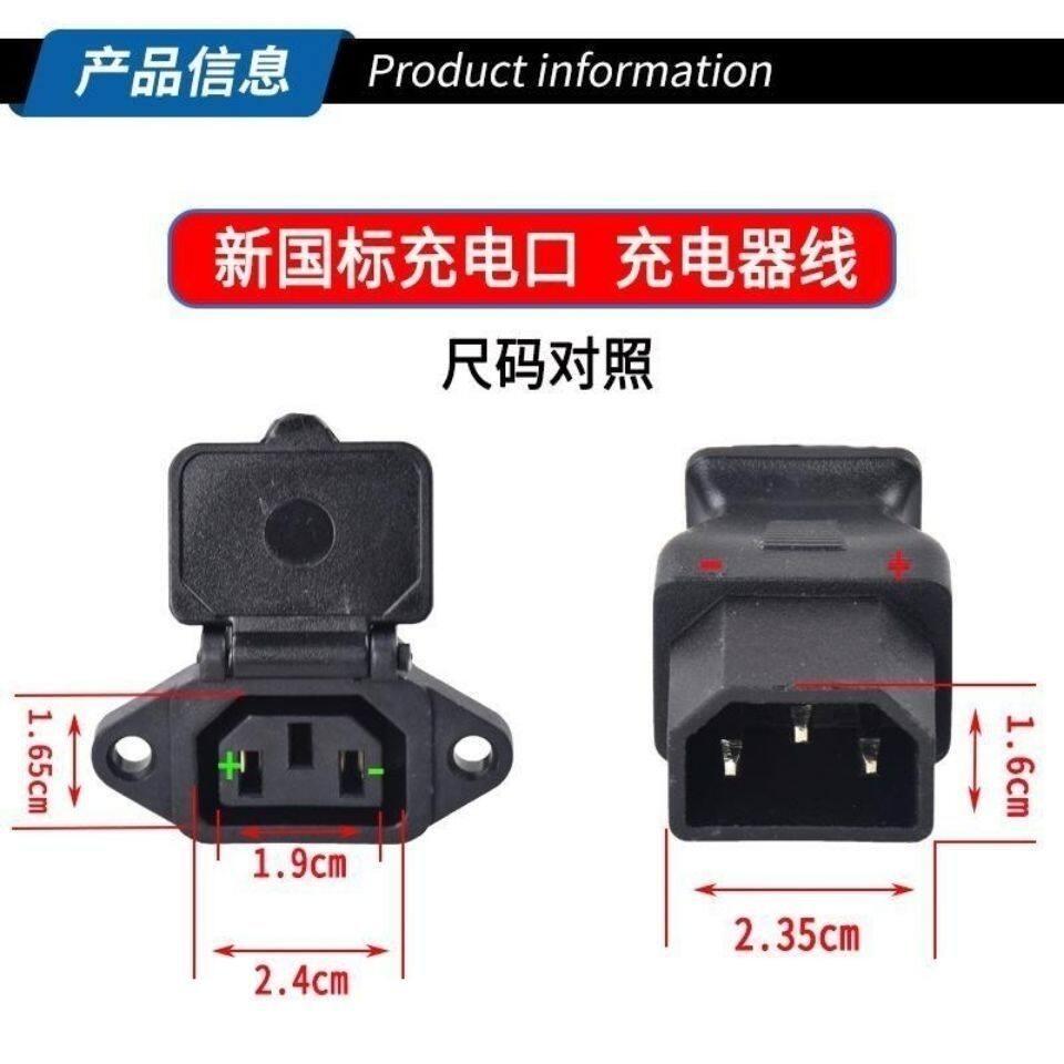 新日电动车充电口充电座 充电器公母头电源线插头插座 T型转换线
