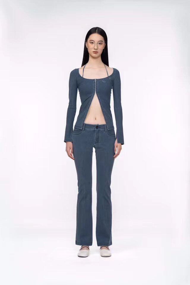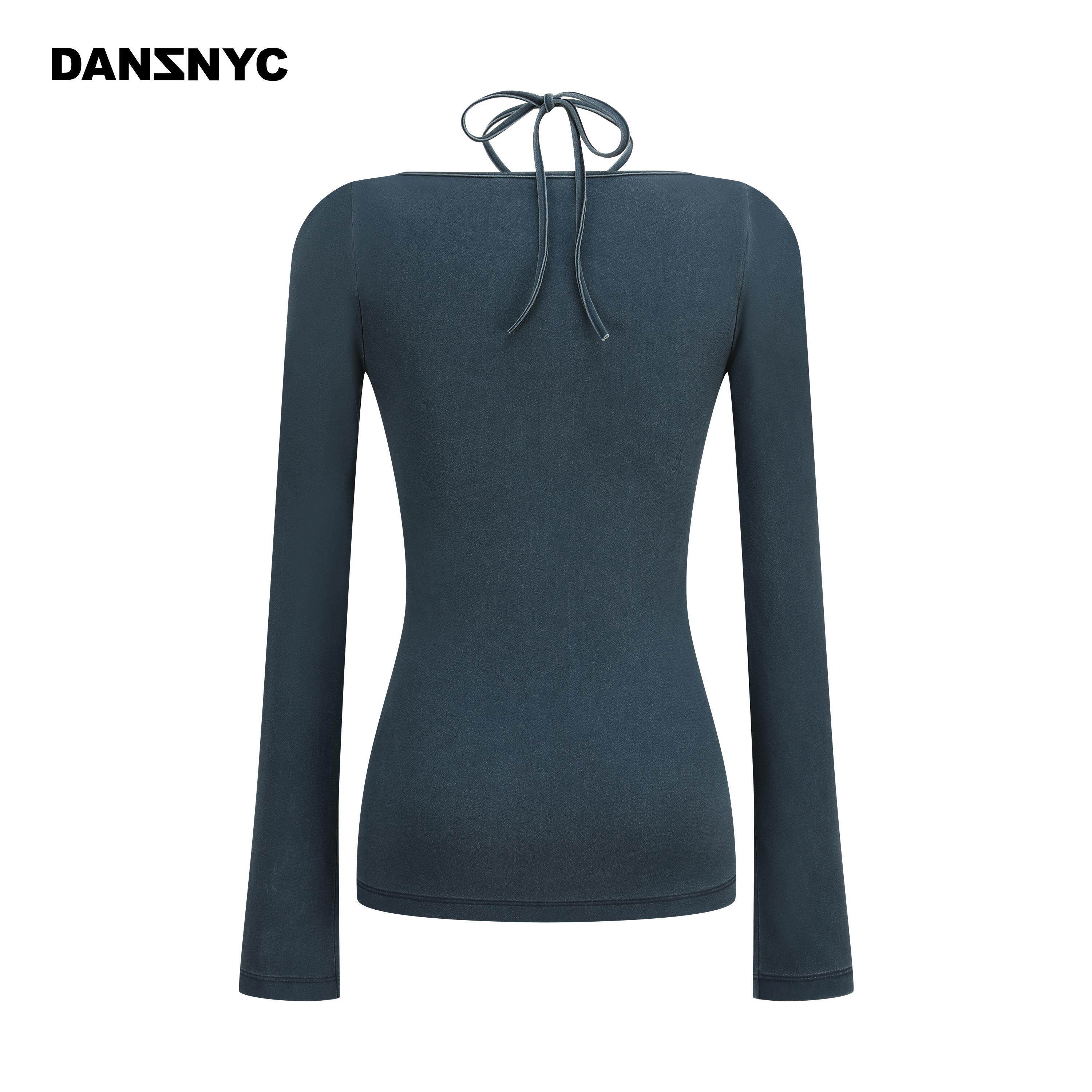 DANZ 牛仔蓝水洗上衣 SENSITIVE®意大利运动速干面料钩扣绑带长袖