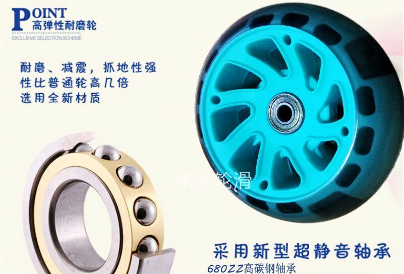儿童滑板车配件轮子前后通用型轮PU静音闪光滑板车转向件