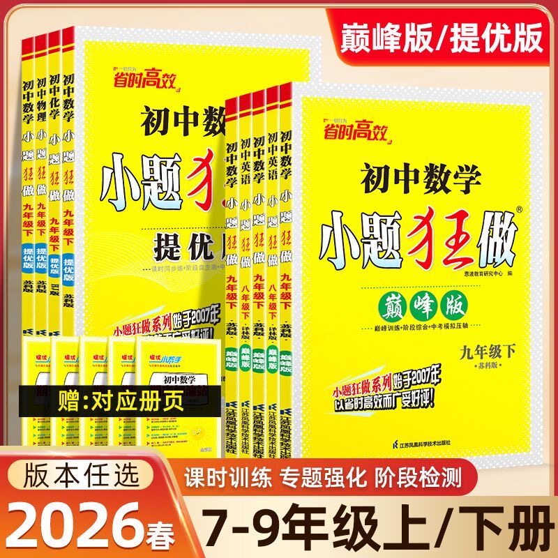 语文数学英语物理化学七八九年级上下册苏科789年级江苏版 同步课时作业学霸初中必刷题恩波教育 巅峰版 2026春小题狂做提优版由