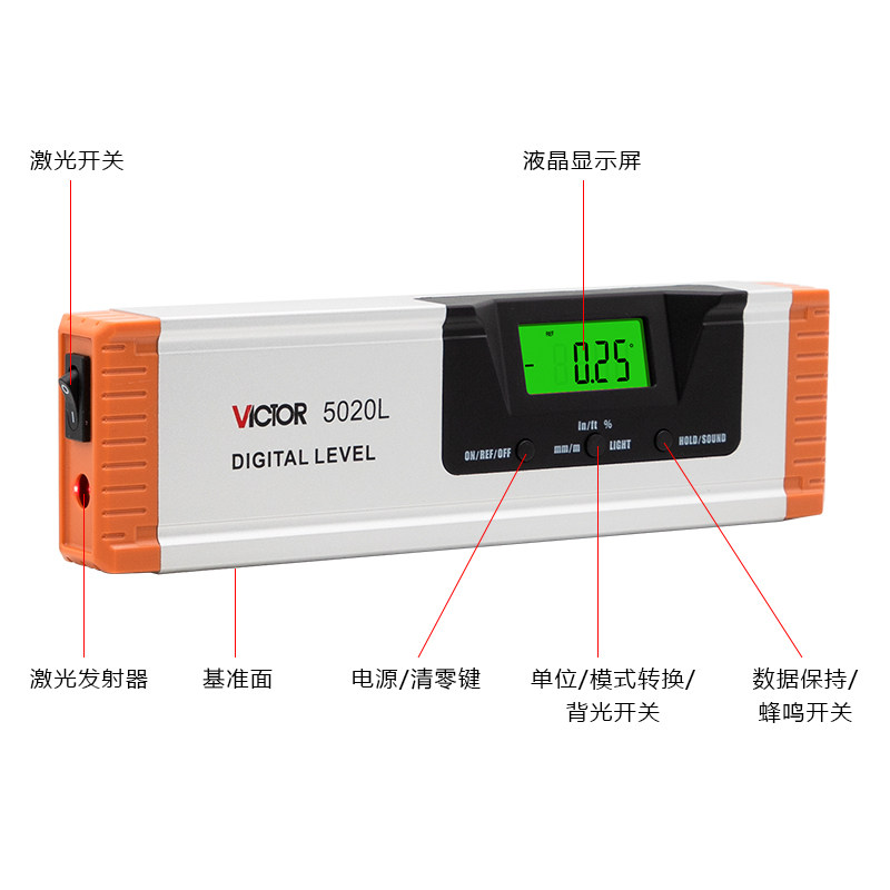 VC5040数显水平尺VC5060激光角度尺VC5100 VC5020胜利仪器VC5020L由