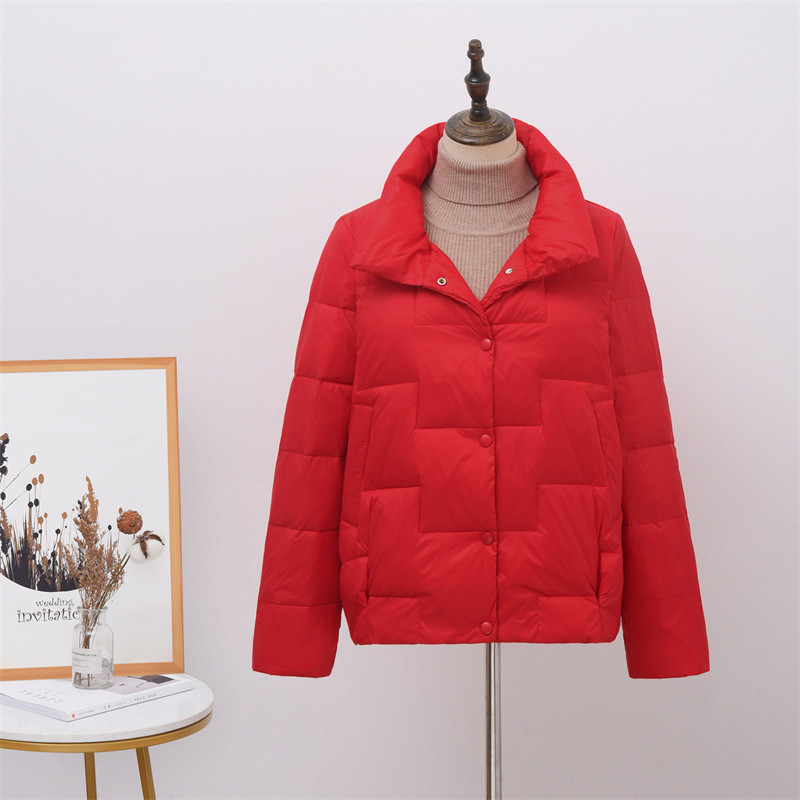 新款 云感鹅绒 波司登明星款 错格立领保暖外套 轻薄羽绒服女短款