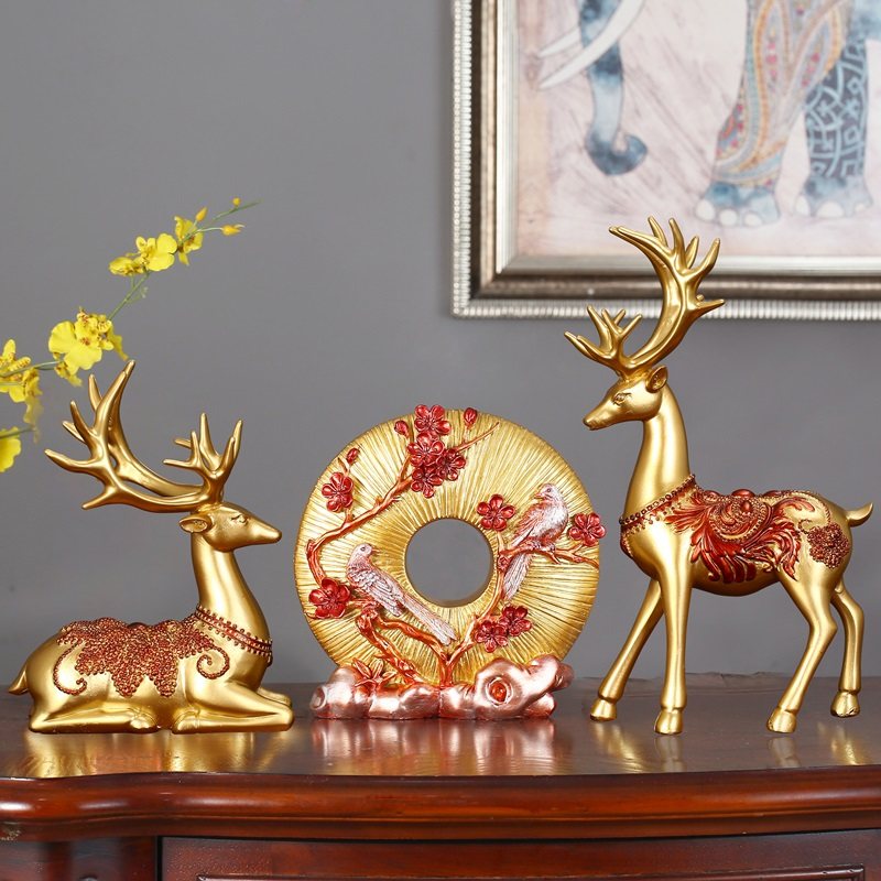 招财鹿客厅酒柜玄关摆件创意欧式 饰新房乔迁礼物 酒架电视柜家居装