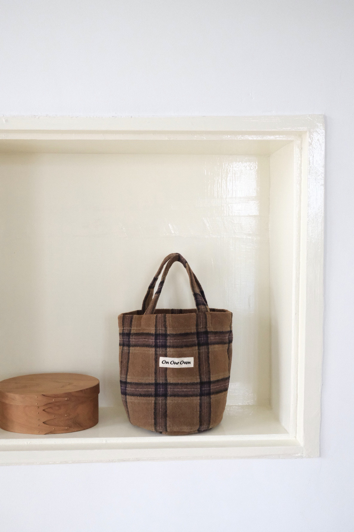 咸菜绿 茶褐棕圆底羊毛格子手拎包袋水桶包 原创 21FW Our Own