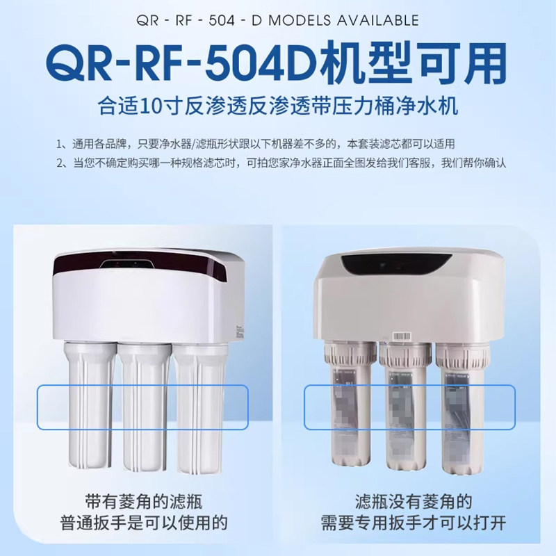504D反渗透纯水机配件 家用适用沁园QR 芯园净水器滤芯五级套装由