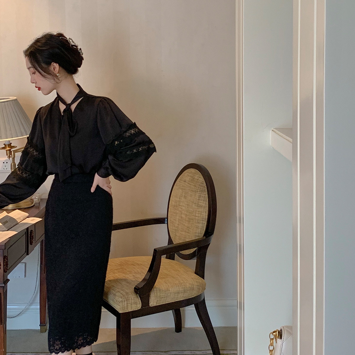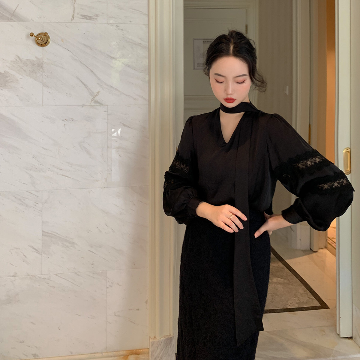 女早春高级感轻奢温柔风衬衣别致很仙 上衣 系带花边领白衬衫 法式