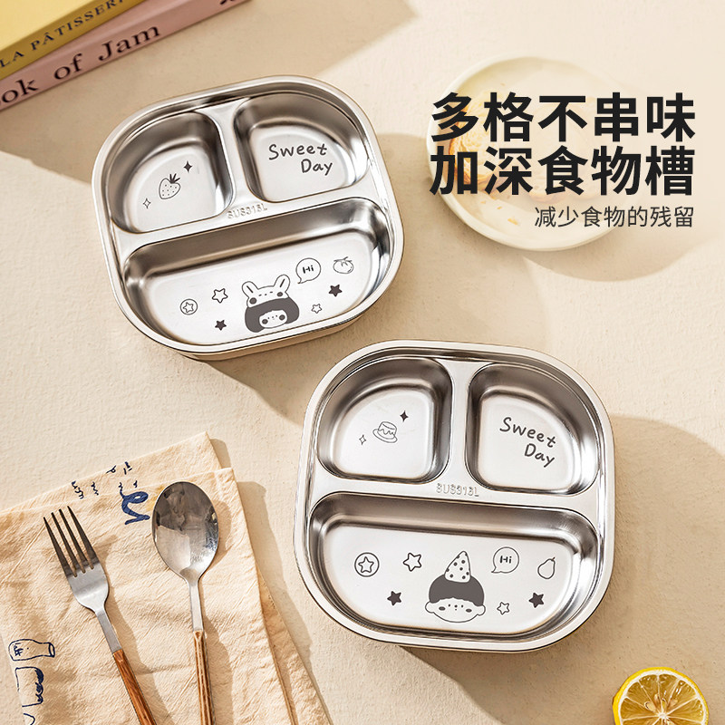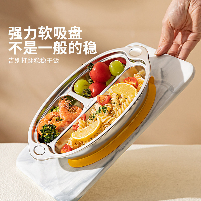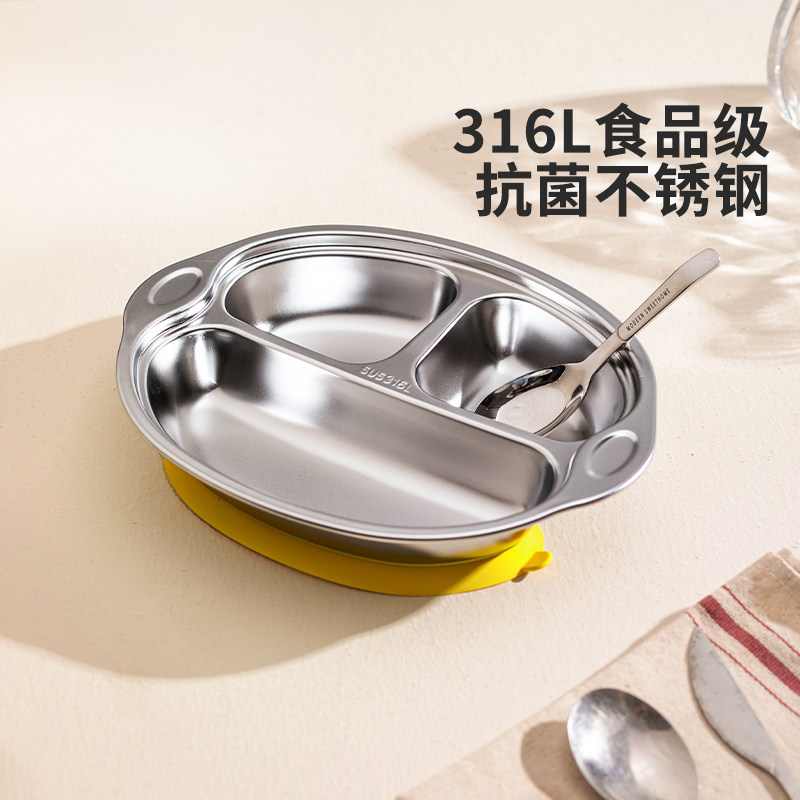 辅食盘婴幼儿园专用餐具饭盘 儿童餐盘316L不锈钢分格盘宝宝吸盘式