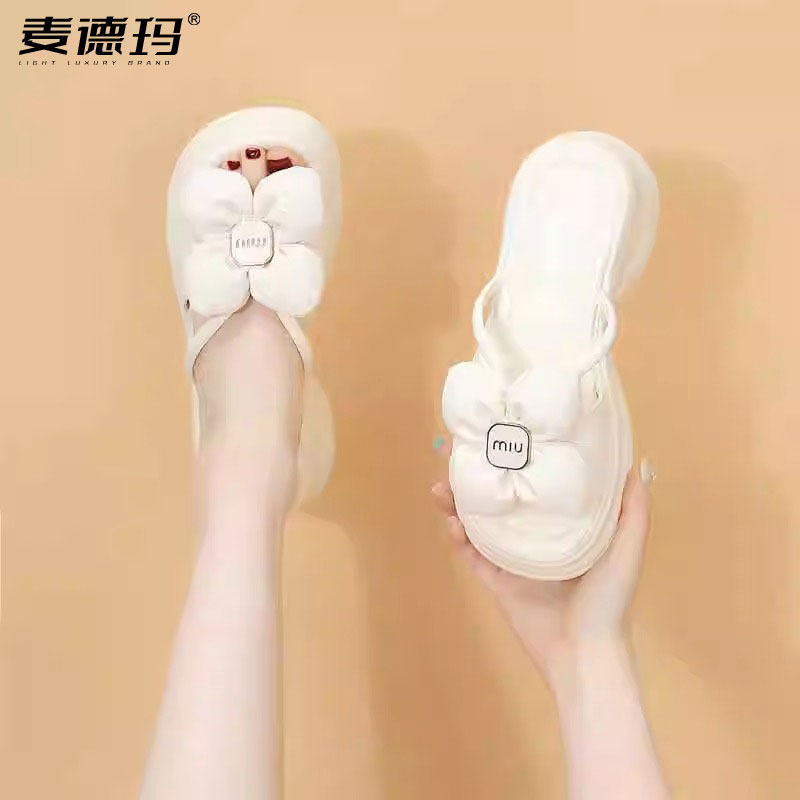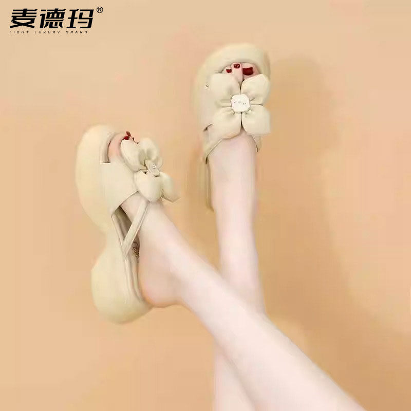 波西米亚海岛风 温柔ins厚底拖鞋 女夏季 外穿防滑沙滩一字拖 法式