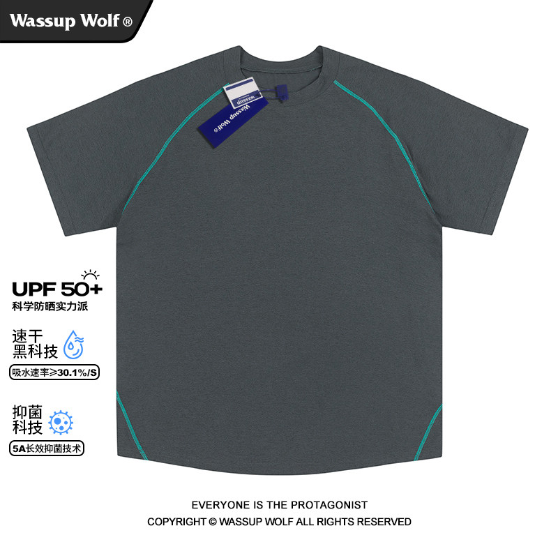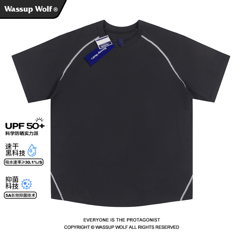 Wassup 防晒UPF50 运动短袖 Wolf拼接T恤男潮牌凉感抗菌速干衣夏季