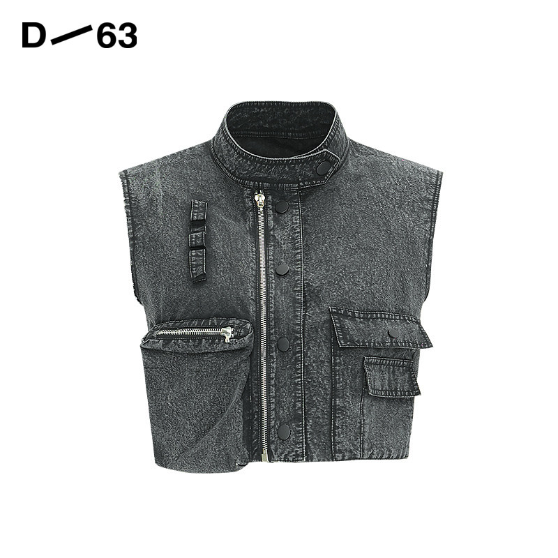 上衣工装 D63女装 风牛仔外套 百搭无袖 马甲立领外套时尚 夏季 新款由