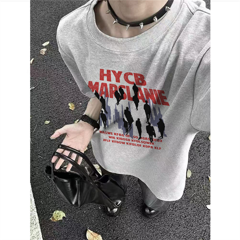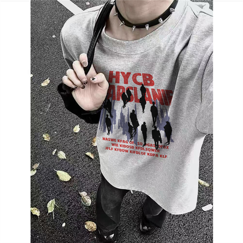 半袖 纯棉重磅潮牌印花短袖 上衣1 宽松美式 新款 T恤衫 男女夏季