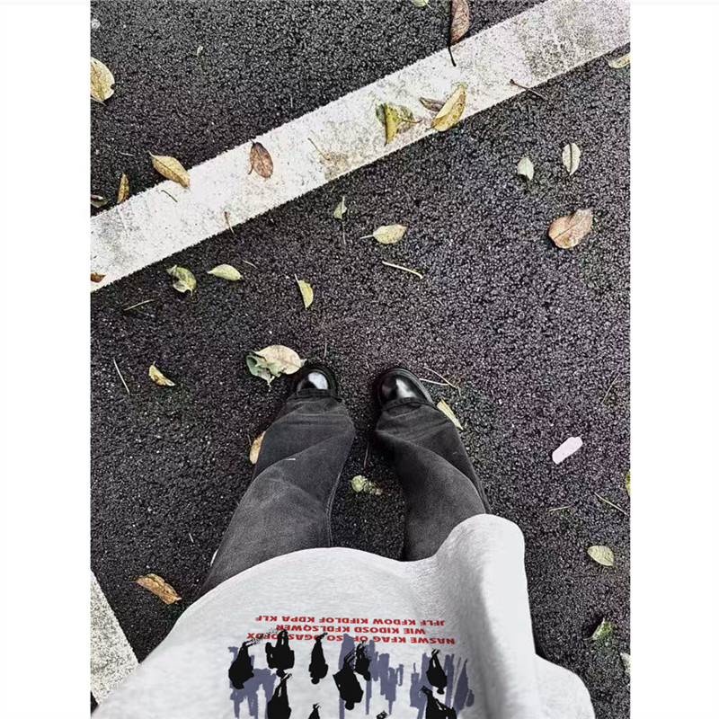 LA短袖 宽松百搭印花上衣白色11 T恤男女情侣落肩袖
