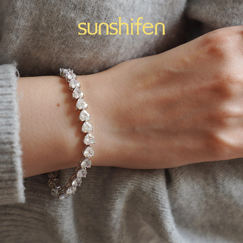 Stack系列满钻心形爪镶白金色手链叠戴轻奢饰品礼物 sunshifen