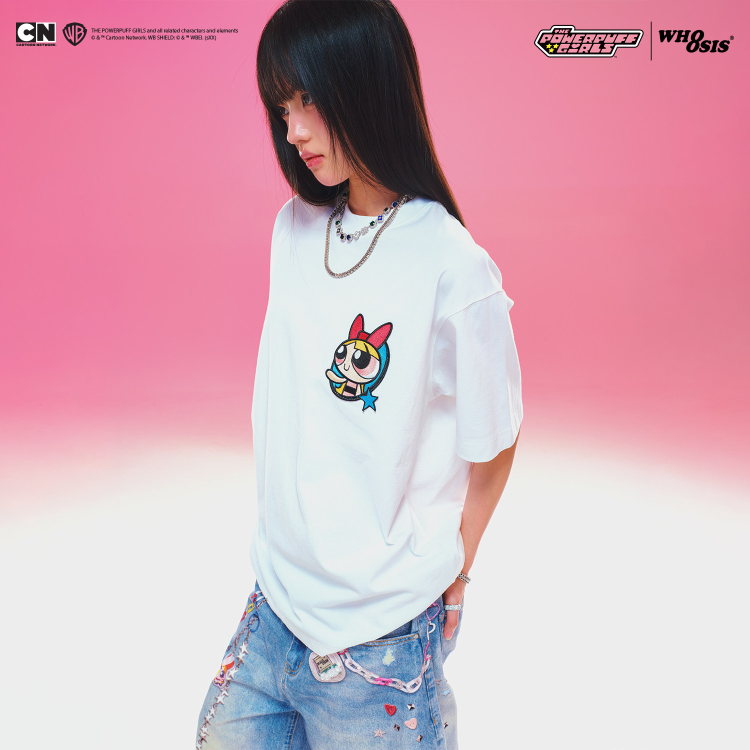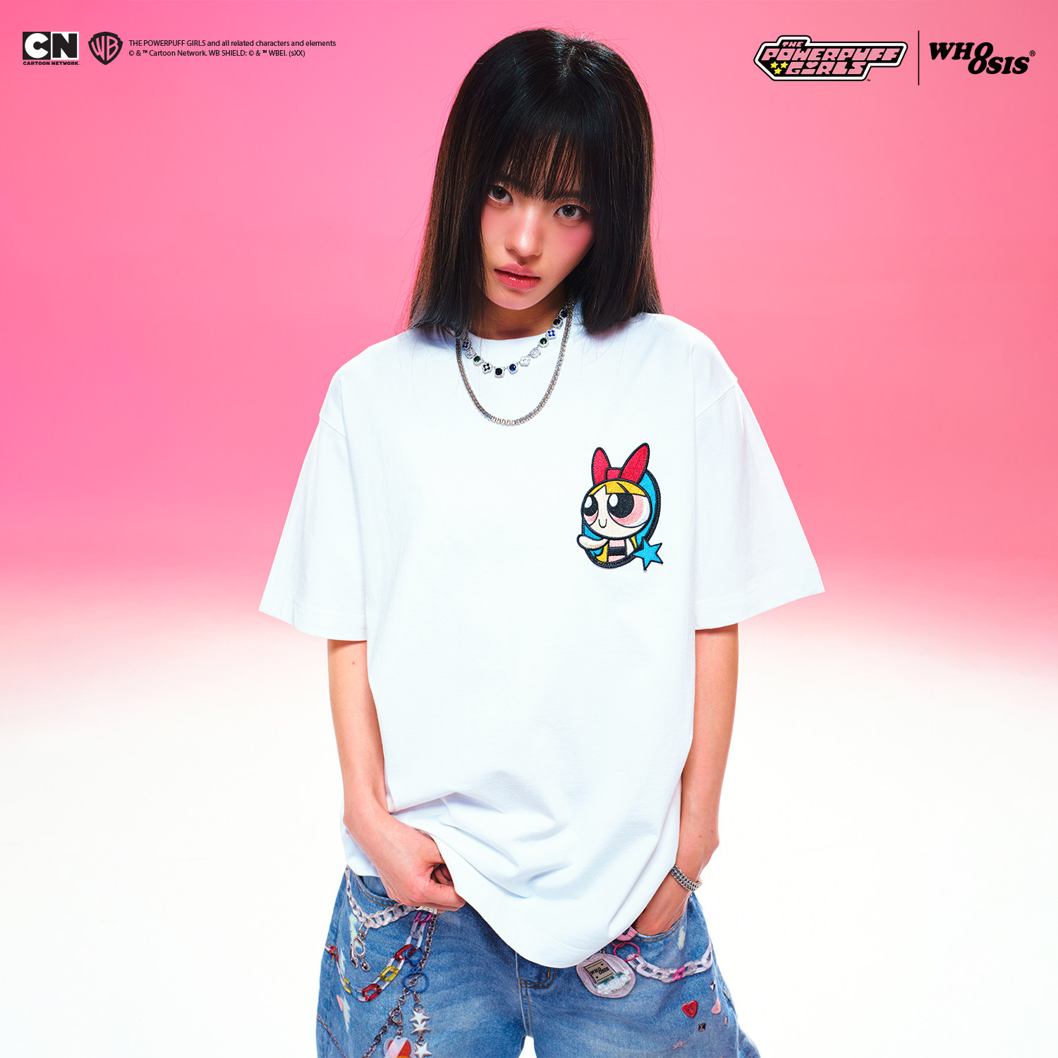 星星人物T恤短袖 飞天小女警联名 WHOOSIS 街头男女潮 卡通美式由