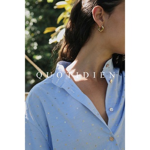 QUOTIDIEN|Été Bleu|法国进口棉制金箔提花条纹慵懒度假衬衫