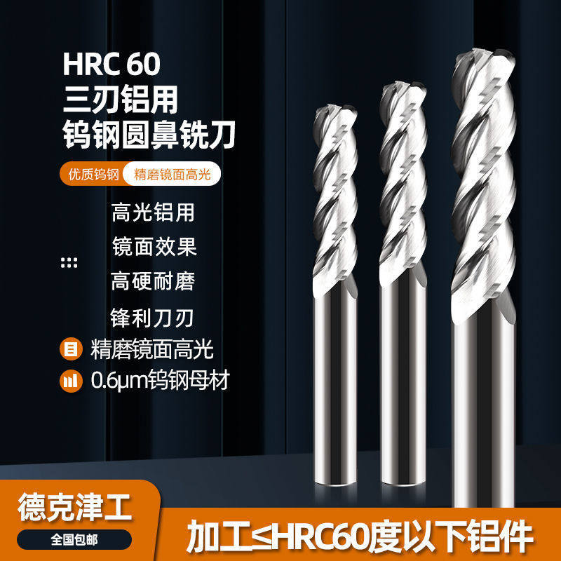 数控钨钢铣刀高光铝用铣刀镜面60度3刃加长铝合金专用铜立铣刀50
