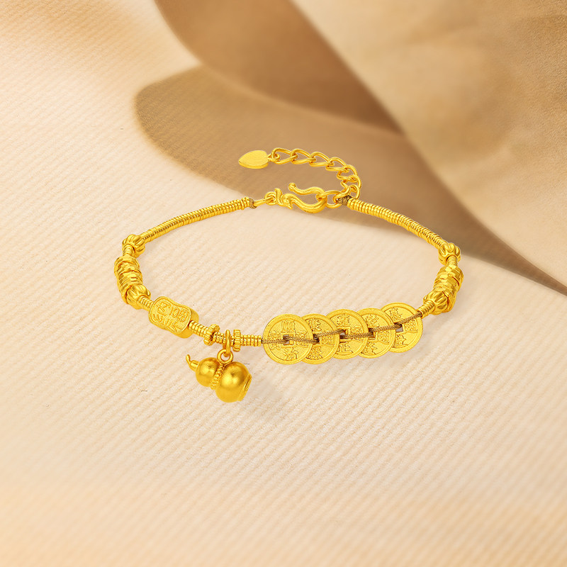 为您提供商品周六福黄金计价足金五帝钱手链招财葫芦钱币盘缠金手串节日礼物的详细介绍,