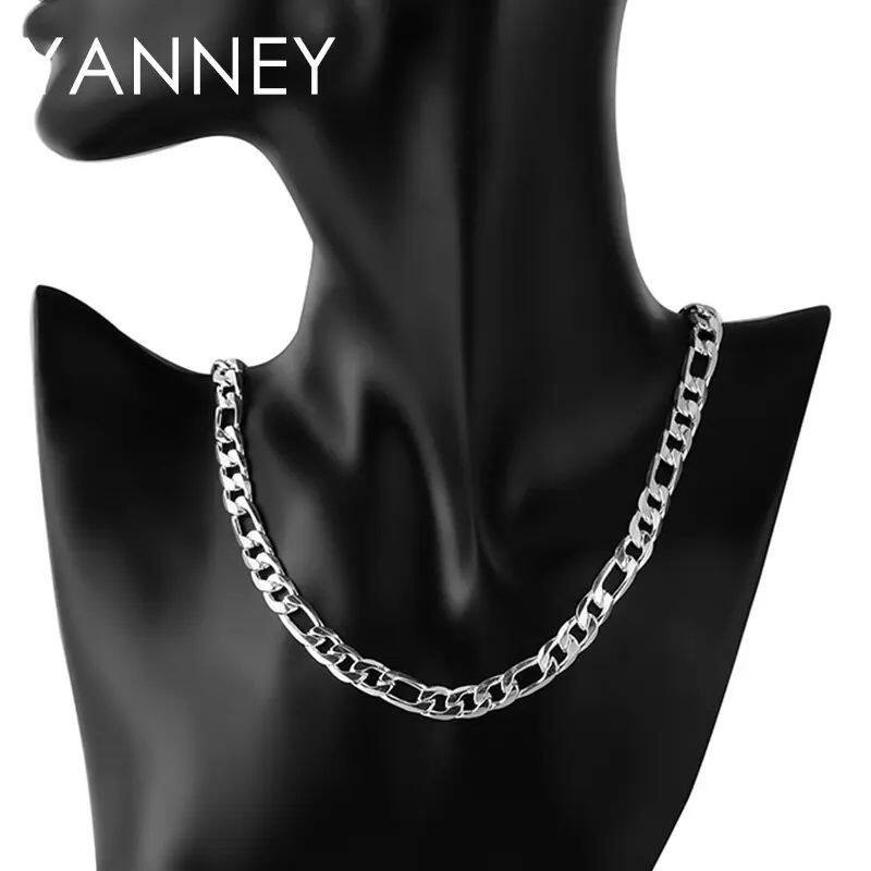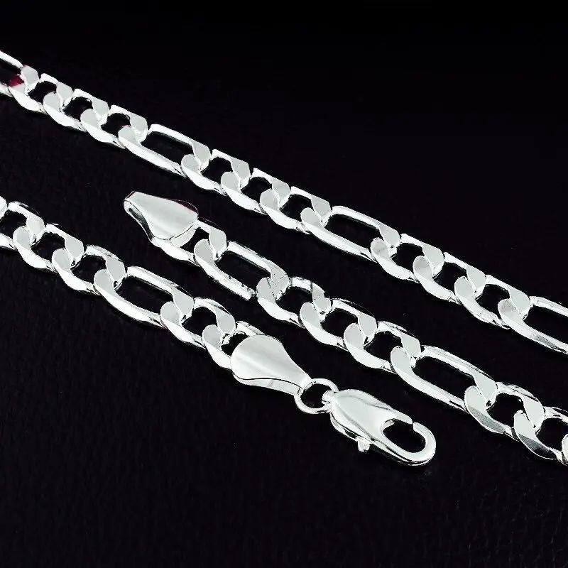 Man Sterling 925 8mm Silver 2pcs Figaro Neckla Chain 60cm由
