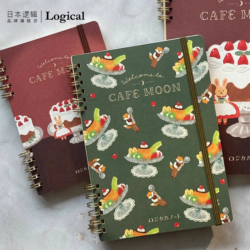 5mm方格笔记本线圈绑带记事本进口原纸插画印花封面硬面抄文艺 Logical逻辑古川纸工咖啡店月亮系列联名款
