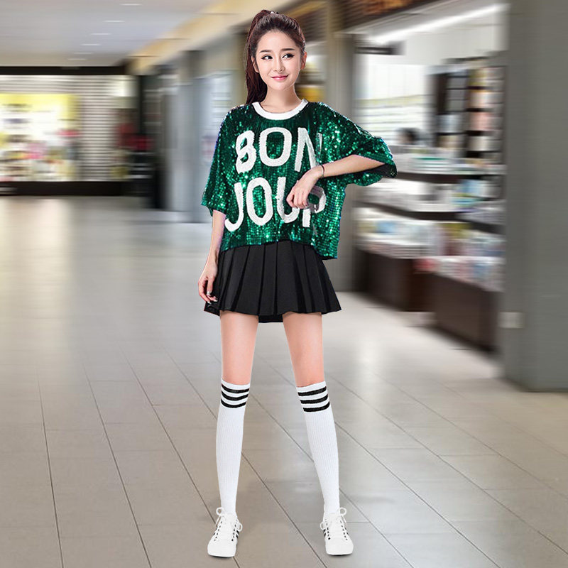 为您提供商品现代爵士舞蹈演出服亮片套装 广场舞衣服女团打歌服跳舞 啦啦队服装的详细介绍,
