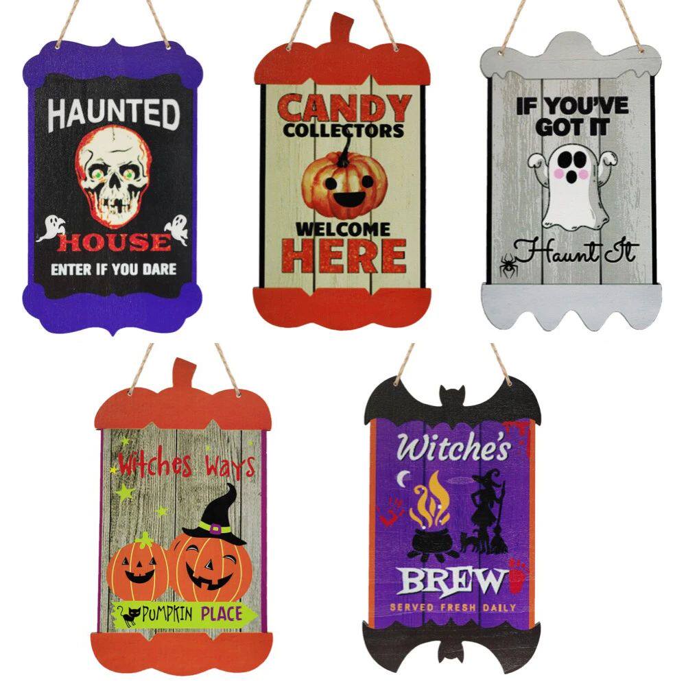 Pendant Sign Door Ornamen Knob Hanging Wooden Halloween由