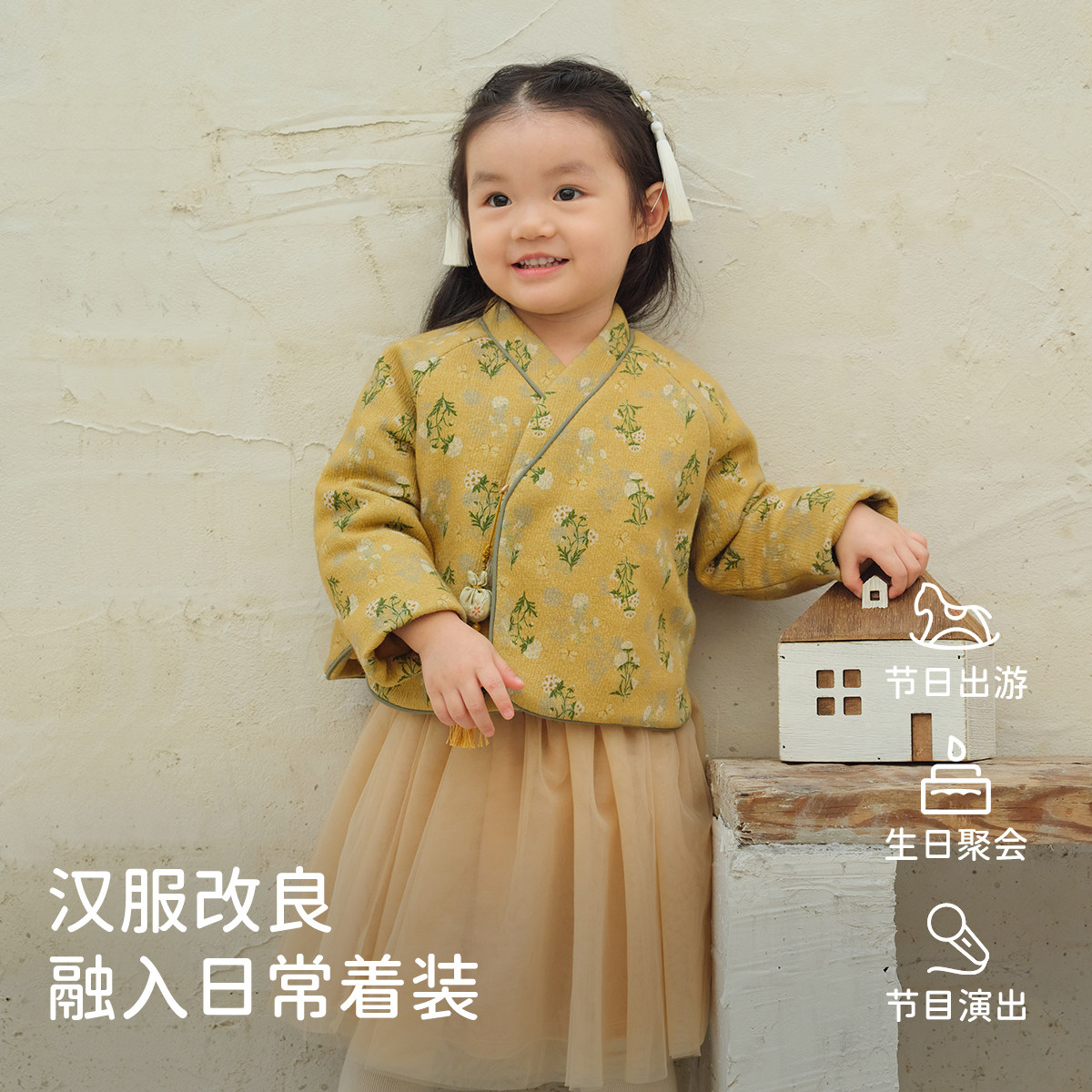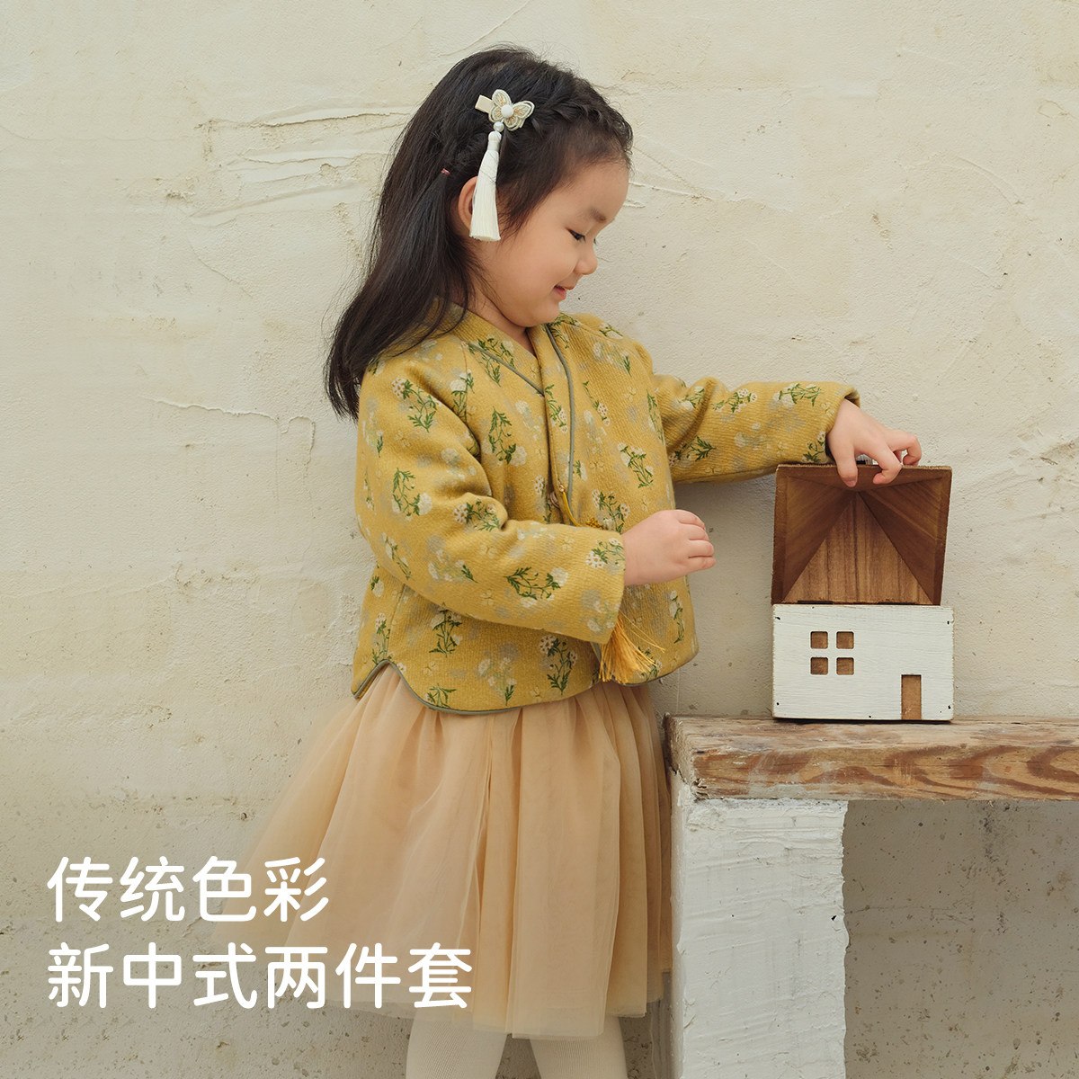 新款 儿童裙子中大童加绒加厚两件套 保暖冬装 戴维贝拉女童国风套装由