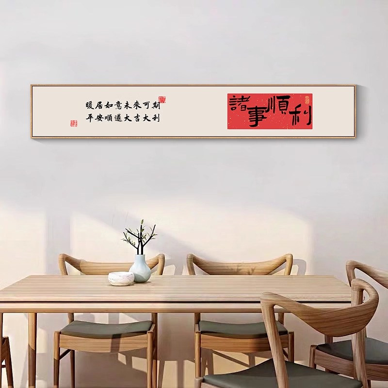 装 饰画 书法字画福顺客厅背景墙挂画喜庆窄长条横版 平安喜乐新中式