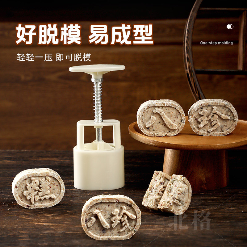 新款 可调 八珍糕点椭圆绿豆冰糕家用食品级压花月饼模具30克手压式