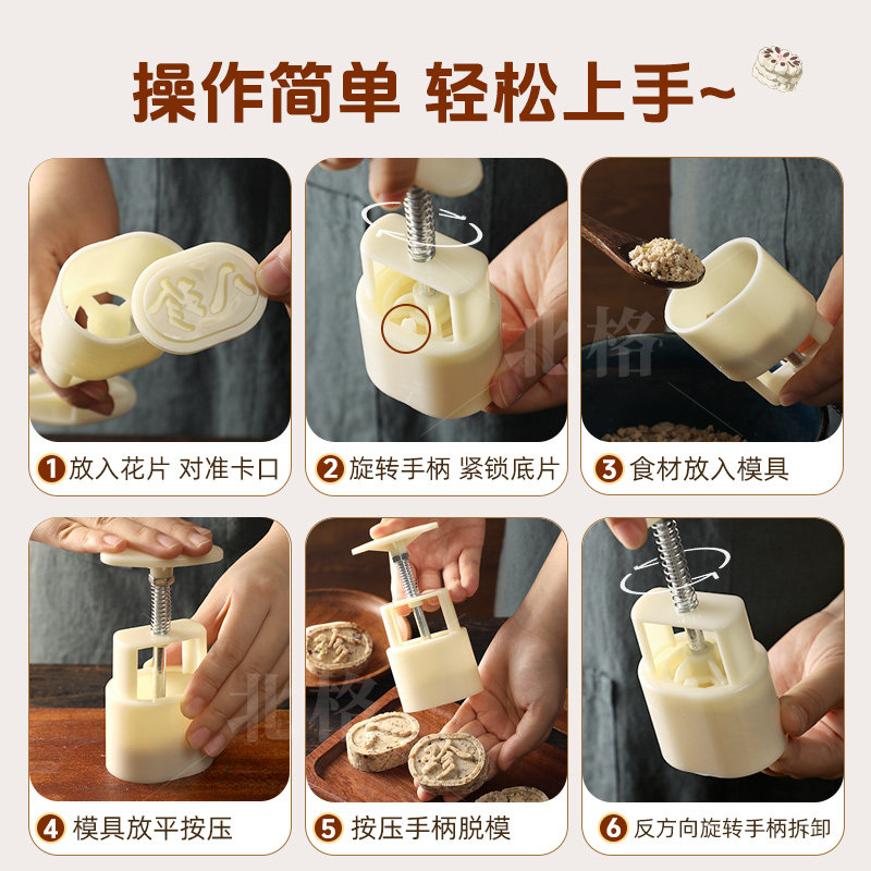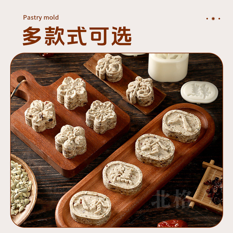 为您提供商品新款 可调 八珍糕点椭圆绿豆冰糕家用食品级压花月饼模具30克手压式的详细介绍,