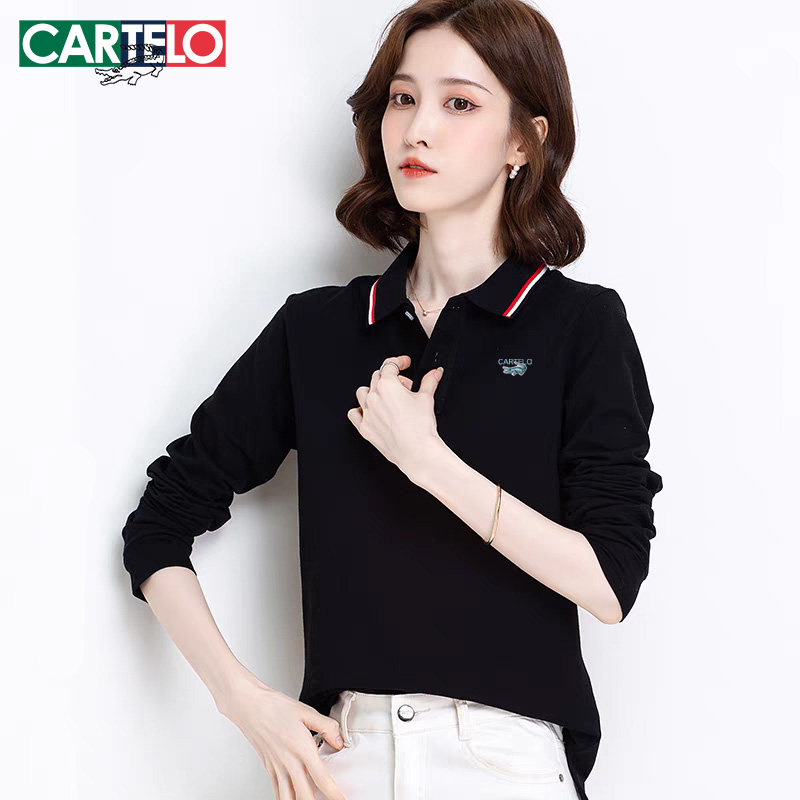 卡帝乐鳄鱼POLO衫 t恤纯棉秋季 宽松大码 运动翻领休闲上衣潮 女长袖由