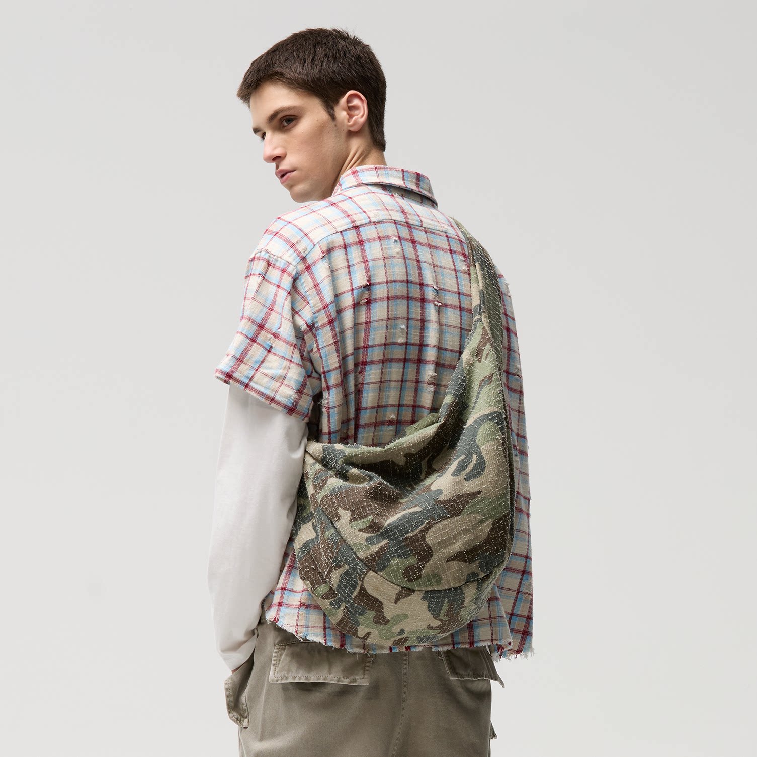 流浪包水滴型充绒大容量休闲通勤迷彩帆布单肩包斜挎包 CENSMADE由