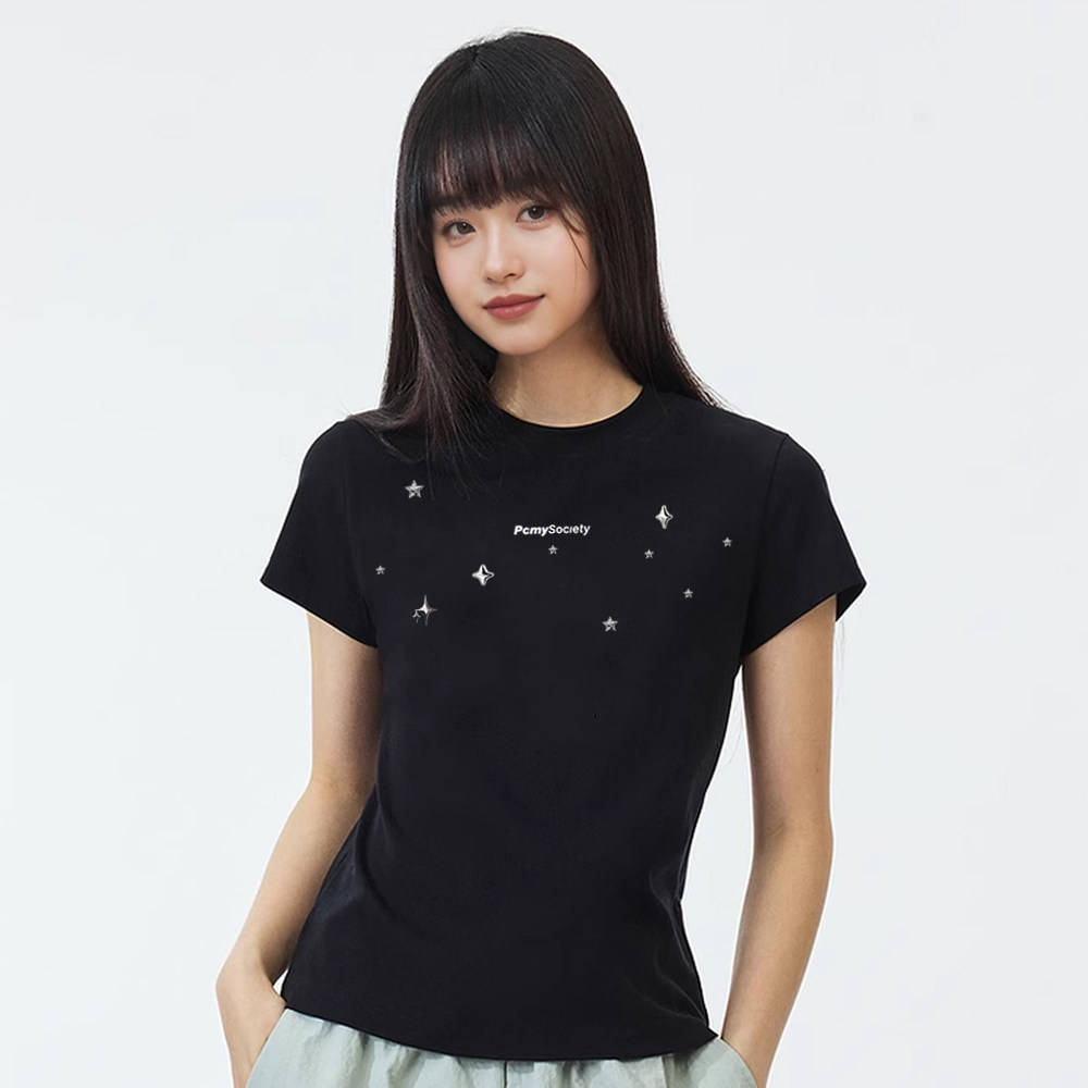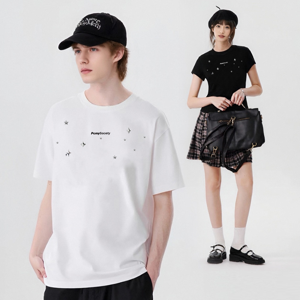 PCMY潮牌星星印花短袖 新款 圆领百搭上衣宽松情侣装 T恤女2026夏季