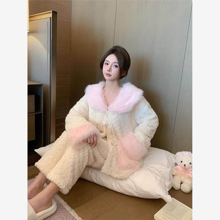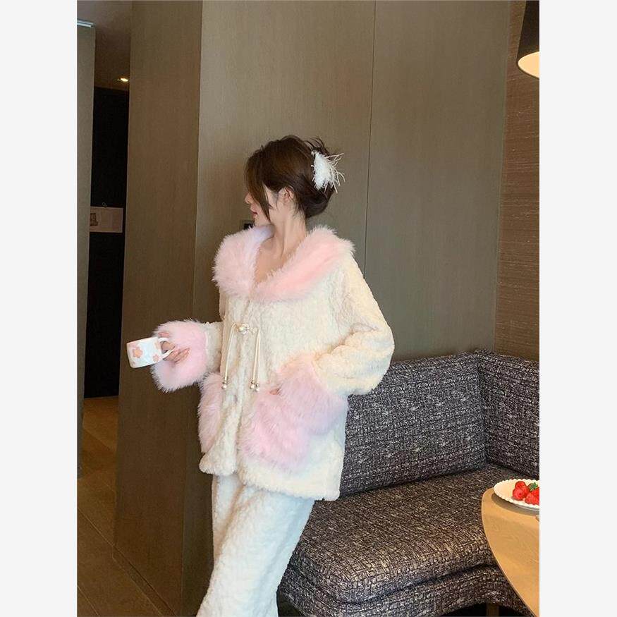 冬天可外穿家居服套装 潮 珊瑚绒加厚加绒国风2024新款 睡衣女秋冬季由
