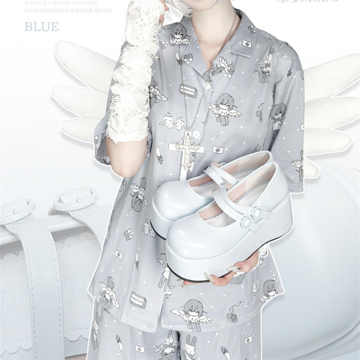 同色底原创厚底鞋 定金 摩多modo新版 双扣松糕鞋 lolita鞋由