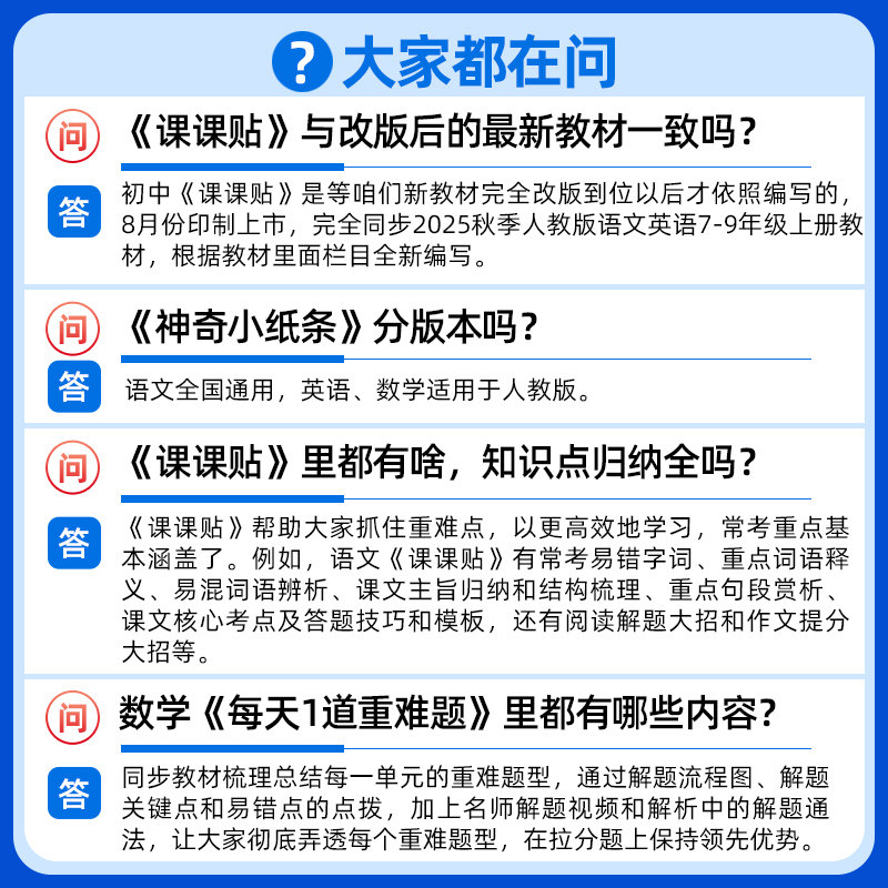 为您提供商品课课贴人教版 数学重难题一遍过七八年级九年级上同步课本初一二三教材预习天星教育 2025秋神奇小纸条初中语文英语新版 抖音同款的详细介绍,