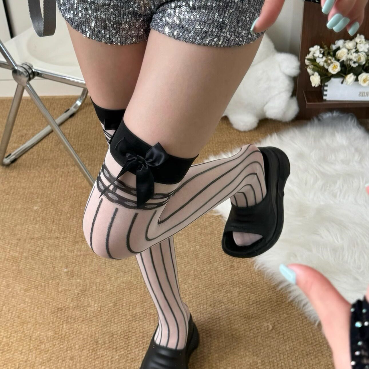 为您提供商品复古双色竖条纹显瘦古早辣妹千禧风穿搭过膝丝袜御姐风长筒袜 BON的详细介绍,