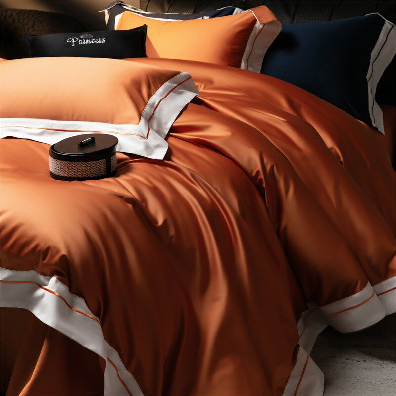 床单被套 简约砂洗天丝刺绣四件套多色床品套件凉感夏季