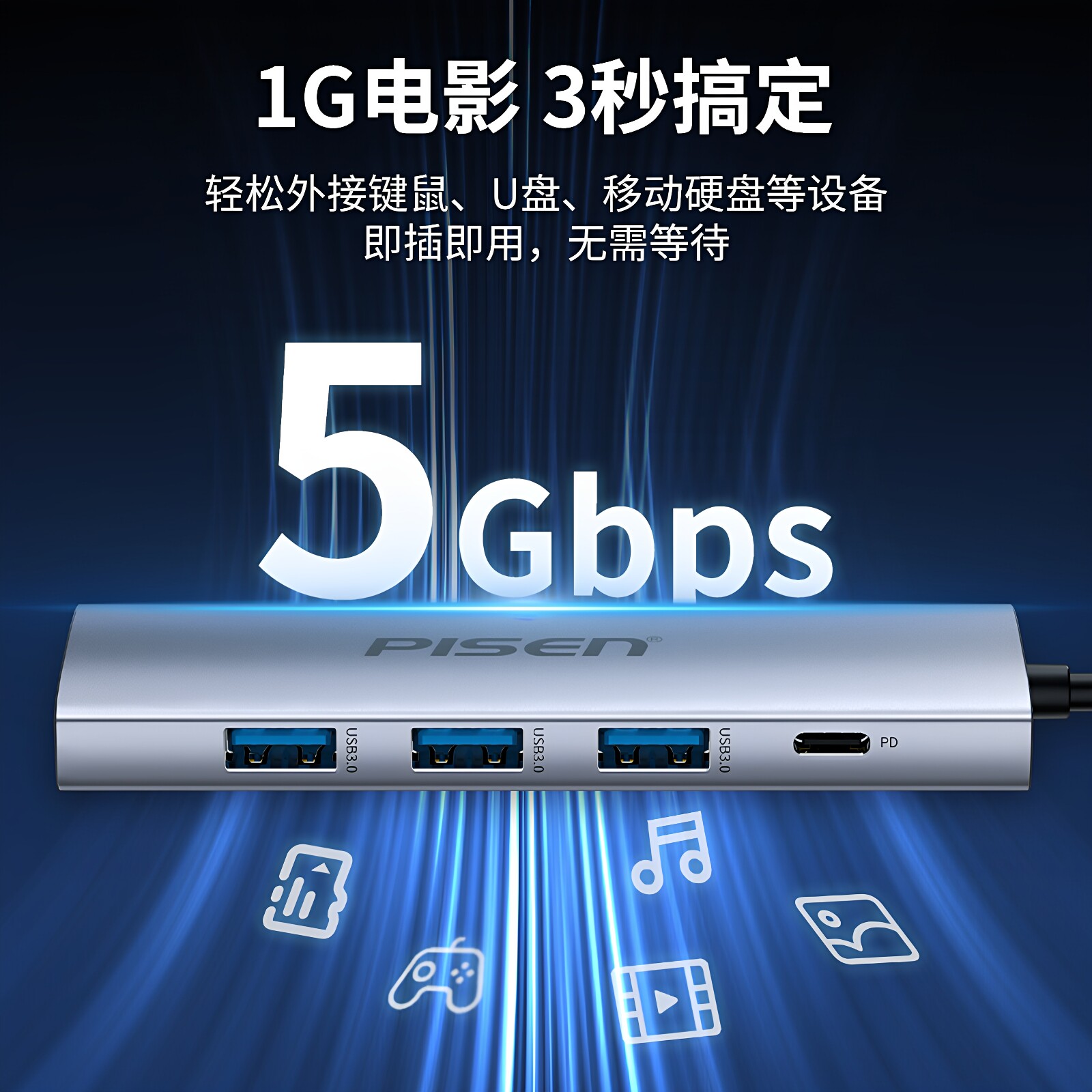 品胜拓展坞typec扩展USB多接口集线转换器HDMI网线转接头适用华为苹果macbook雷电4笔记本电脑iPad11平板mini由