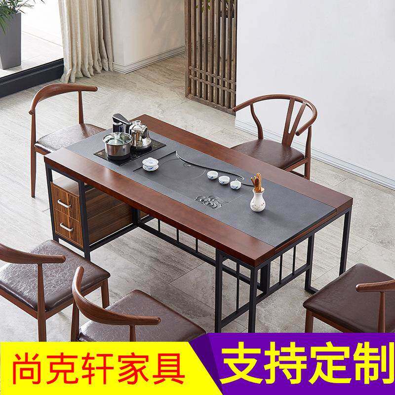 茶桌椅合组代火烧石功茶桌简约现茶几茶道夫茶艺桌泡茶胡桃620色