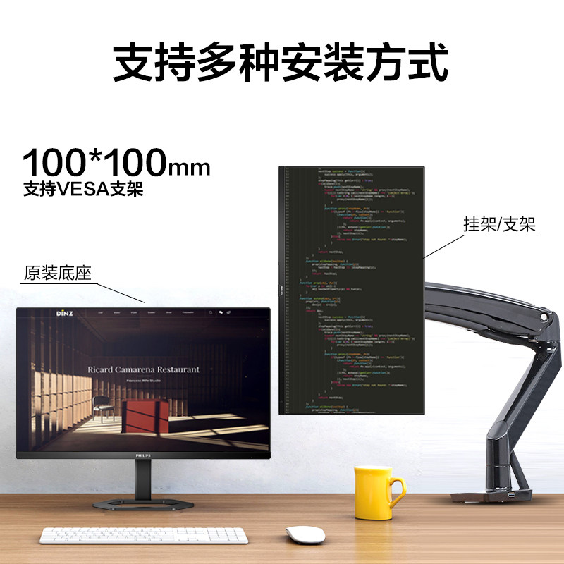 悬臂E350 北弧显示器支架机械臂电脑便携副显示屏幕底座vesa升降式