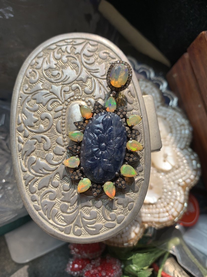 为您提供商品AYW欧洲英国回流天然雕刻坦桑石欧泊钻石银镀金吊坠中古vintage女的详细介绍,