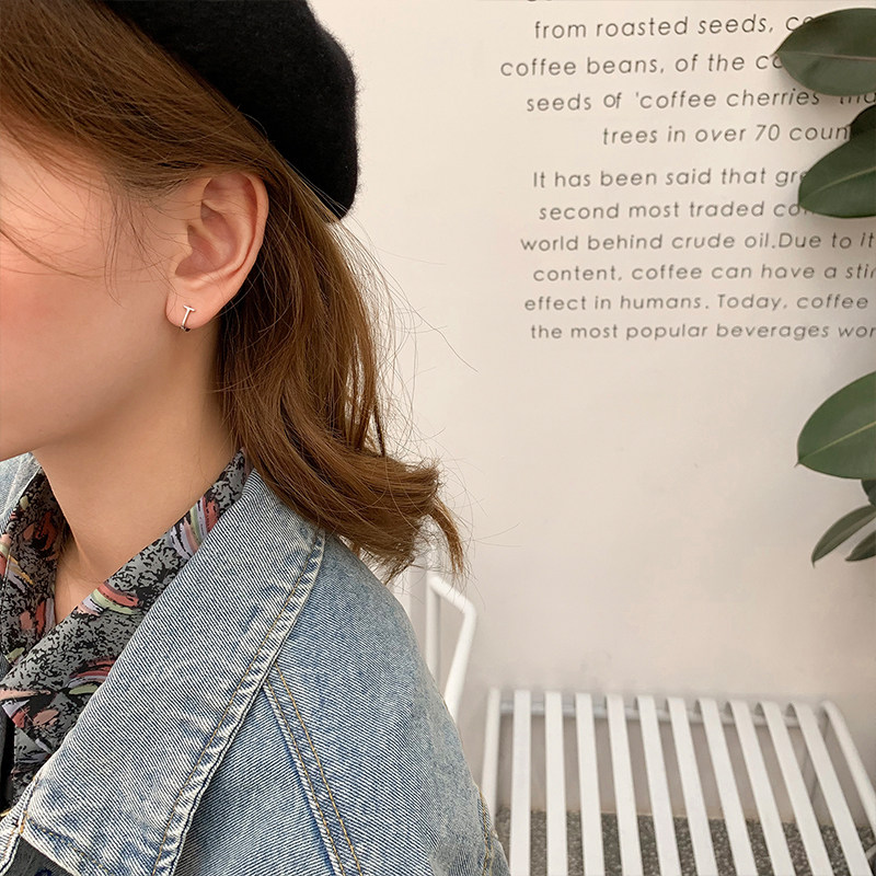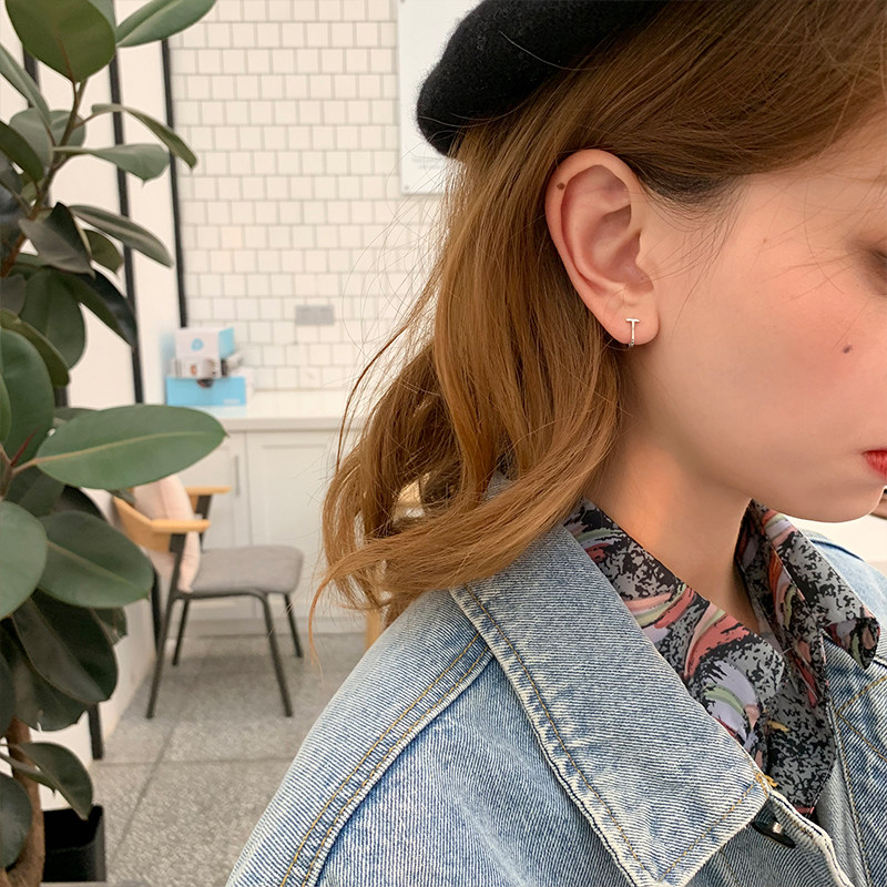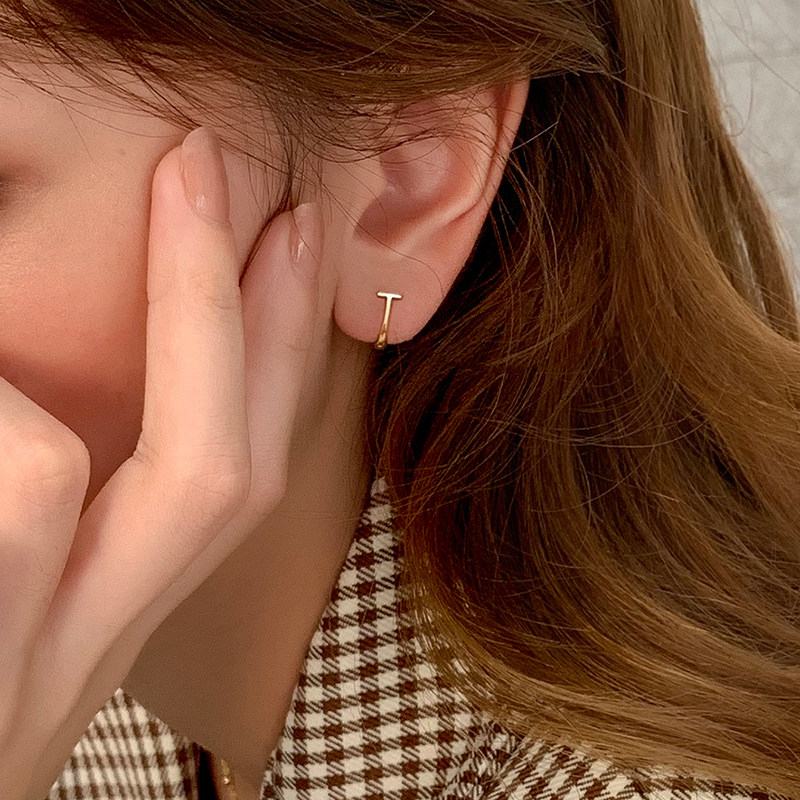 字母t耳环耳饰潮 925银针耳钉女小众高级感简约冷淡风耳圈耳扣韩版由