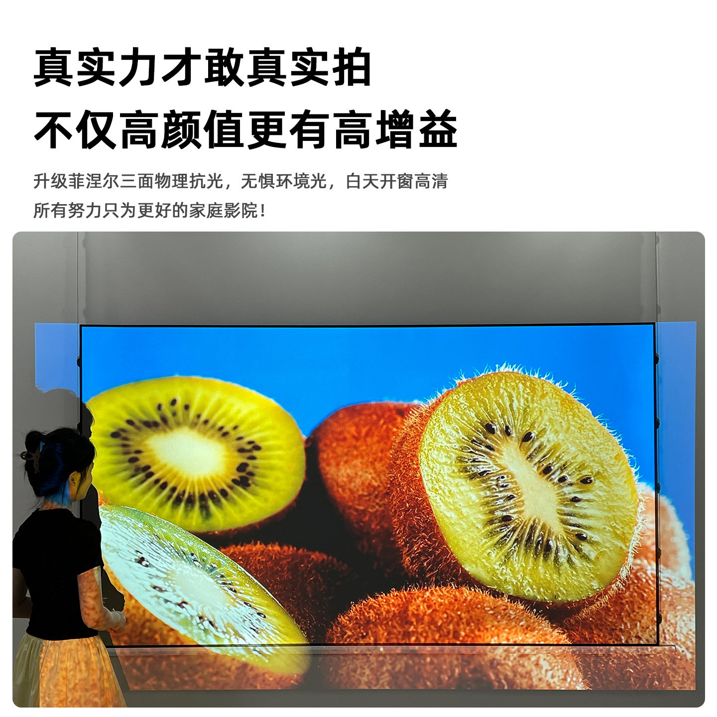 QSY千色语纳米家用抗光投影幕布超窄边全色菲涅尔投影仪硬屏3D 8K超高清家庭影院100 120寸16 9画框屏布幕