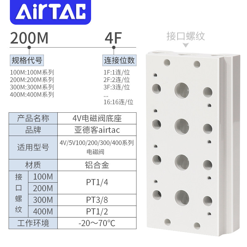 为您提供商品10F AIRTAC亚德客4V 11F 5V电磁阀底座汇流排底板300M的详细介绍,