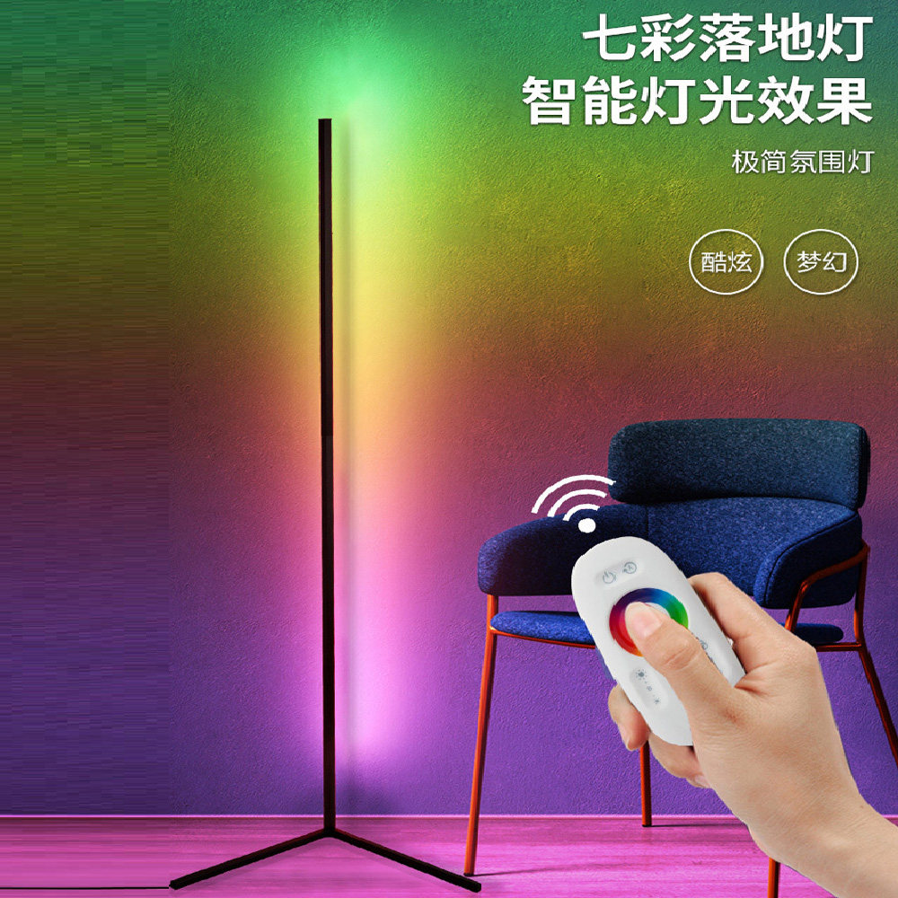 饰灯 简约北欧幻彩直角RGB落地灯电竞氛围灯客厅遥控墙角LED创意装