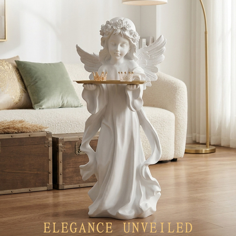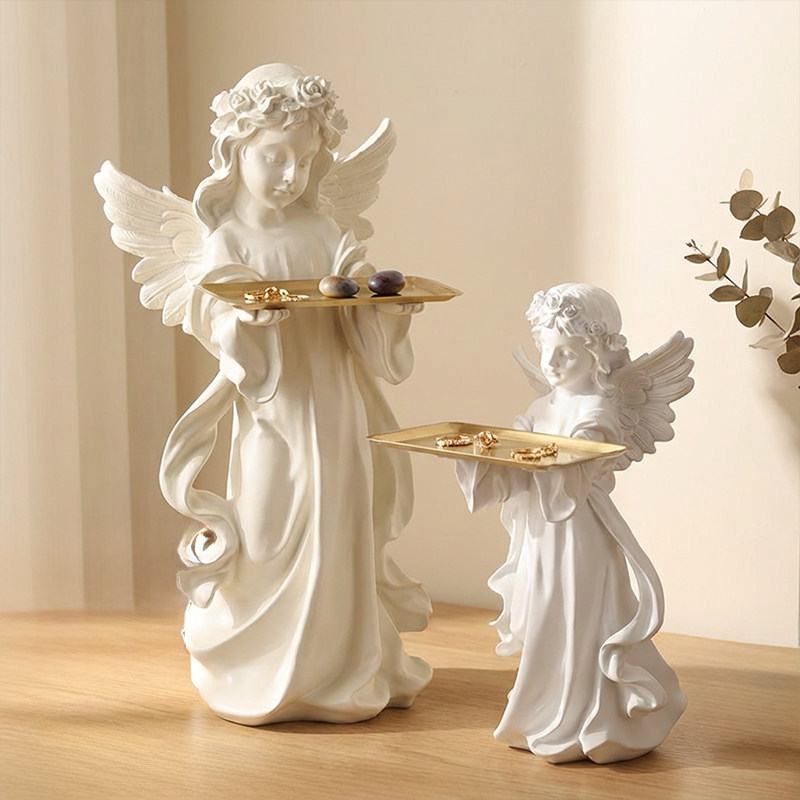 欧式 饰品石膏像雕塑 复古天使落地摆件托盘客厅玄关钥匙创意桌面装