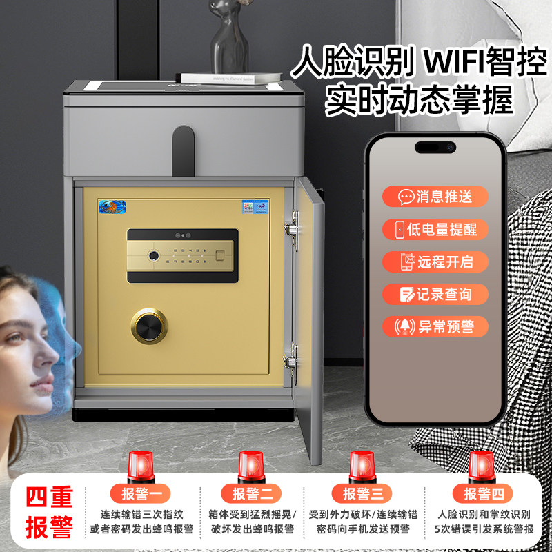 58cm虎牌保险柜家用2026新款 智能多功能床头柜式 保险箱指纹Wifi远程报警办公室文件防盗柜家庭用 极简设计由