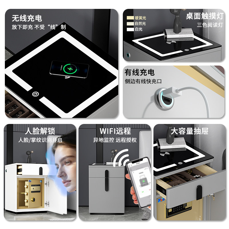 58cm虎牌保险柜家用2026新款 智能多功能床头柜式 保险箱指纹Wifi远程报警办公室文件防盗柜家庭用 极简设计